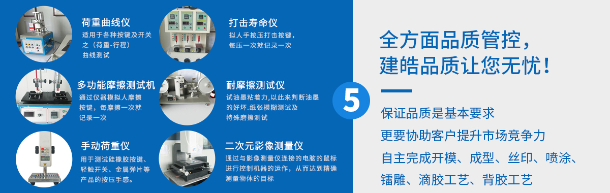 建皓硅膠作為東莞一家專(zhuān)業(yè)定制結(jié)構(gòu)復(fù)雜、工藝繁多的硅膠制品廠(chǎng)。成型-絲印-噴涂-鐳雕-滴膠等這些工藝均在廠(chǎng)內(nèi)自主完成。公司不僅定制生產(chǎn)硅膠制品,更免費(fèi)為客戶(hù)提供技術(shù)支持!