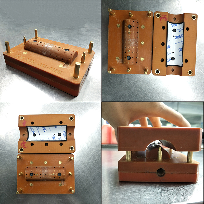 如下圖:該款硅膠片是用在一款路由器上面的,至于它是如果背膠的?小編在找過(guò)我們負(fù)責(zé)生產(chǎn)的高經(jīng)理了解后才知道由來(lái)。且聽(tīng)小編我細(xì)細(xì)道來(lái),很多人都知道,正常的背膠硅膠片背膠時(shí)我們會(huì)為了避免有氣泡,都會(huì)有開(kāi)一種名為裝配治具的東西,用來(lái)輔助生產(chǎn)員工進(jìn)行貼合。裝配治具結(jié)構(gòu)是按照產(chǎn)品的結(jié)構(gòu)來(lái)設(shè)定的,這款硅膠制品設(shè)計(jì)時(shí)考慮到拱形沒(méi)辦法拉直來(lái)背膠,該款治具在開(kāi)治具時(shí)直接開(kāi)成拱形的硅膠裝配治具。如下圖: