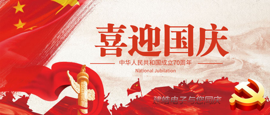 在舉國上下慶祝祖國70華誕之時(shí),東莞市建皓電子科技有限公司在此祝所有兢兢業(yè)業(yè)的職工、關(guān)心支持我司發(fā)展的新老客戶、以及各界朋友國慶快樂!全家幸福,身體健康,萬事如意!