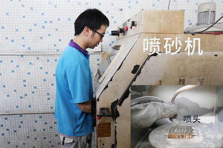 然后手持噴砂頭垂直對準(zhǔn)模腔,高度距離為30mm左右,均勻?qū)枘z制品模具的模腔進(jìn)行噴砂處理,并按模腔的排列順序移動噴砂頭,完成所有模腔的噴砂處理。注意:噴砂頭距離硅膠制品模具的高度,如果過高可能會造成模具的腐蝕和污垢清洗不徹底,如果過低的話又可能對模具造成損傷,尤其是在噴金剛砂時(shí),如果距離太近或者噴的時(shí)間太長極易磨損模具尖銳部分。